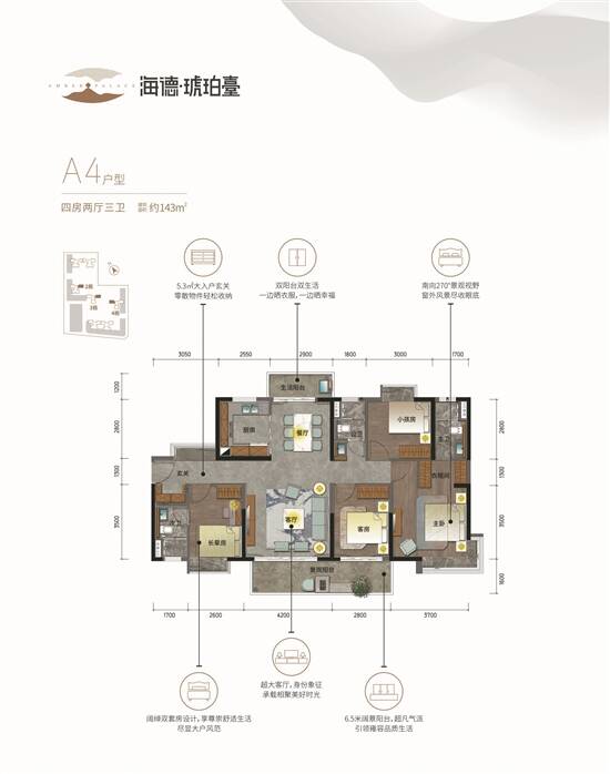 珠江万科城 获奖户型:童梦三房两厅 约77平方米 获奖理由:东莞万科首个创新型三房,77平方米能做三房,且布局合理,动静分离,最关键是首付只要40万元起。该户型户户朝南,明厨明卫,而且这次厨房还特别附赠了洗碗机。3.4米开间的客饭厅,提供了充足的活动空间。270度双飘窗设计,可作为私人小天地,同时又增加了房间内采光。 光大ONE+ 获奖户型:117平方米全能四房 获奖理由:117平方米全能四房,入门长约4.5米的大飘窗,空间灵动,既可打造成休闲区,又可变身收纳空间,还可营造迷你花园,给居家增添绿意。创新性横厅设计,朝南开间达到了约6.8米,整个户型的面宽达到了13.6米,极大地增加了采光和通风效果。阳台开间约3.9米,面积约7平方米,比一般的房间还大。同样拥有双卫生间配置,干湿分离,明卫通风。奢阔四房,主人房、儿童房、老人房、多功能房,陪孩子长大、陪父母变老,任何珍贵的时光都不容错过。 莞民投·众筑悦璟台 获奖户型:璞悦三房两厅 约98平方米 获奖理由:该户型属于东莞首创三房舒适户型,三房两厅两卫设计,南北通透、明厨明卫,是东莞楼市上少有的98平方米也能做到南北通透的优质产品。 其大面宽横厅格局,整个客餐厅有约6.1米乘4.3米宽阔空间,雍容大气,揽怀家人欢聚时光,客厅连接宽景阳台,生态美景尽收眼底。而入户公共卫生间设计,干湿分离,私密性做到更好。卧室三个房间采用“L”形排布,功能分区明显,提高空间使用率。各个卧室飘窗设计,视野开阔,保证整体空间采光和通风,并且主卧套间设计,彰显主人尊贵感,优化生活品质。 海德·琥珀臺 获奖户型:A4四房两厅 约143平方米 获奖理由:该户型为东莞罕有的四房三卫改善型产品,南北通透、四开间朝南。4.4米超大开间客厅,身份的象征,承载家人相聚的美好时光;南北双阳台设计,北瞰黄旗,南揽园林,其中南向景观主阳台面宽6.5米,超凡气派,引领雍容品质生活。 厨房公卫独立成区,干湿分离,动静分区。阔绰双套房设计,长辈房兼顾家里老人需求,四代同堂共享天伦之乐。各个卧室配备飘窗设计,采光通风;主卧套房设计,配备衣帽间,享尊崇舒适生活,尽享大户风范。 丰泰湾区·风华世家 获奖户型:香漫三房两厅 约90平方米 获奖理由:该户型属于东莞实用性较高的三房户型,三房两厅两卫设计,南北通透,夏有凉风冬有阳,明厨明卫、双阳台,是东莞少有的90平方米也能做到两个卫生间的优质产品。餐厅客厅相连,整个客餐厅有约7.2米乘3.4米宽阔空间,雍容大气,客厅连接宽景阳台,3000亩白马湖尽收眼底。 厨房与餐厅相连,优雅随享生活美味,私密两卫,干湿分离,私密性做到更好。卧室三个房间采用“I”形排布,功能分区明显,空间使用率超高。各个卧室飘窗设计,视野开阔,阳光充足,推窗即赏好风光,豪华主卧,套间设计,空间开阔,奢华起居,彰显贵族气质。 华侨城·云麓台 获奖户型:臻山四房两厅 约120平方米 获奖理由:东莞罕见的两梯两户,电梯前室私享独立电梯,四房两厅两卫设计,纯板式南北通透,同时四面朝南,全景飘窗,南向客厅拥揽美景,是东莞少有的120平方米也能做到单梯入户四面朝南的通透优质产品。同时还拥有罕见7米阳台,奢阔雅致,拥揽多维景观。 入户公共卫生间设计,干湿分离,私密性做到更好。动静分离,长幼有序,布局合理让每位家庭成员都有自己的小天地。各个卧室飘窗设计,视野开阔,保证整体空间采光和通风,并且主卧套间设计,彰显主人尊贵感,优化生活品质。