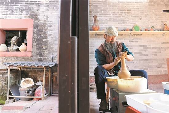 文/羊城晚报记者 秦小辉 图/羊城晚报记者 王俊伟 在古老的李凤池民居里,身着长衫,蓄着长须的周祖嵘静心凝目,手拉泥坯。周祖嵘说,从老家山东淄博南下广东深圳多年,想不到还能在东莞市石排镇塘尾古村,寻到一方远离城市喧嚣,安放心灵的净土。 8日,羊城晚报记者探访塘尾古村落发现,今年以来,石排镇村两级联动,积极探索古村落保护和活化利用新路径。目前,已成功吸引中国民族画家刘立群等9位知名艺术家进驻古村落,开设工作室,创作融合本地特色与北方文化的艺术作品;而且,艺术家们还变身塘尾村“新村民”,通过成立“塘尾艺术家联盟”,开展文化公益活动和文化展演,为古村增添新活力。 艺术家迁居古民居潜心创作 周祖嵘今年53岁,是山东省非物质文化遗产雨点釉制作技艺传承人,也是首批进驻塘尾古村落的艺术家。周祖嵘说,与塘尾古村落的缘分始于2020年7月,当时,他还住在东莞生态园。一次偶然的机会,经一位朋友介绍,得知塘尾古村落正在招贤纳士。“我对古村有特别的情怀。”闻讯的第二天,周祖嵘便和太太孙女士欣然前往。 彼时,秋日斜阳,穿堂弄巷,透过青砖红墙、镂空窗花,照射进古村老屋,周祖嵘有一种寻到一方远离城市喧嚣,安放心灵净土的感觉。夫妇俩对古村一见钟情,决定举家搬迁于此。 记者12月8日拜访周祖嵘夫妇时,周祖嵘已在古村成立工作室。青砖红墙内,墙架上、镂空窗台上,茶桌上,茶盏、束腰樽、柳叶瓶、手工素陶等陶瓷作品琳琅满目,瓷韵碟光,散发古朴的光泽。周祖嵘说,他的工作室主要用于陶瓷作品设计。近期,他还参观东莞市博物馆,走访了塘尾古村落各个角落,收集素材,捡寻碎瓦,接下来希望能将北方陶瓷艺术与岭南文化相融,创作出带有岭南特色的艺术作品。 “引进来”让古村有了灵魂 周祖嵘落户古村落的故事仅是一个缩影。记者了解到,为活跃塘尾村文化氛围,提升古村落文化内涵,自2020年7月以来,乘着“石排镇乡村振兴三年战略”的东风,在石排镇、塘尾村两级的推动下,塘尾古村落已经进驻了中国民族画家刘立群、广东省工艺美术大师、中国书法家协会会员王欢来、北京师范大学启功书院教授赖源泉等9位艺术名家,开设了8个工作室。记者走访发现,村内红墙古巷依旧,但却新添了不少陶瓷、油画、书法作品。三三两两的游客鱼贯而入,堂前屋后,宾主相见甚欢。 “让艺术家进来,古村落就有了灵魂,就感觉有了生气,活起来了。”自2018年以来,石排镇政府宣教文体旅游办副主任张丽姣一直挂职塘尾村党工委副书记。张丽姣说,启动“引进来”模式源于起初的接待和推广的需要。2012年12月17日,塘尾村被列入第一批中国传统村落名录后,前来参观、调研、游览的各级领导和游客增多,塘尾村广受关注。但是,每每有人前来,除了赞叹古村保存完好外,总不免有“空村”的感叹。张丽姣萌发了引艺术家进村设立工作室的想法。 现在,张丽姣在古村的工作更忙了。除了负责接待解说外,还要服务好进驻的艺术家,为他们的生活和创作提供帮助。张丽姣说,近期,她跟塘尾村党工委书记正在为周祖嵘寻找能够承载高伏电压、烧制陶器的地方,以实现周祖嵘的作品从设计到烧制全流程不出村。 村民物业升值村集体增收 “现在塘尾村环境好了,我们村民的物业也升值了,还可以不时在家门口享受到艺术大咖们带来的公益培训。”塘尾村村民、古围美食的老板李邓中告诉羊城晚报记者,近年来,随着塘尾村的环境优化美化,其物业租赁收入增加了一倍。今年,更令不少村民欣喜的是,落户于此的艺术家们正在成为塘尾村的“新村民”。他们成立“塘尾艺术家联盟”,定期开展陶艺、书法等公益活动和文化展演,让艺术回归乡村,回馈乡亲。 “目前,塘尾村正在探索一条由生态振兴带动人才振兴,又由人才振兴推动产业振兴的古村落活化利用的新路径。”张丽姣表示,近年来,在石排镇委镇政府的大力支持下,塘尾村积极践行党建引领乡村生态振兴,推动美丽幸福村居一二三期工程建设,深入打造塘尾古村落-红石山遗址公园连片示范区。目前,配套服务于塘尾古村落和外围的塘尾商业街已经建成,计划引进一些高档餐馆、咖啡店、甜品店等经营场所,目前准备通过公开招投标确定运营商,“预计运营后可为村集体年增收40多万元”。数据显示,2020年塘尾村1-10月经营总收入961万元,同比增长7.98%;资产总额10897万元,同比增加3.27%。