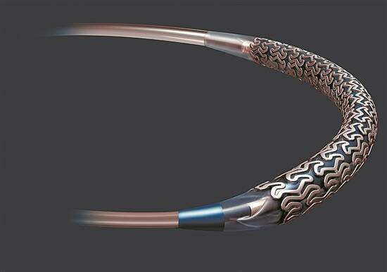 支架通过动脉鞘植入冠状动脉 |