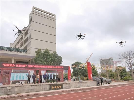 羊城晚报讯 记者张闻、通讯员黎毅诚摄影报道:12月14日下午,以“科技助力 智慧大沥”为主题的佛科产业转化研究院城市治理无人机捐赠仪式在佛山市南海区大沥镇海北中学举行。本次所捐赠的10架无人机将应用于城市治理的多个领域,进一步提高管理执法工作水平和效率,未来,大沥镇也将组建无人机监督执法队,进一步深化城市的精细管理。 随着科学技术的进步,无人机的功能愈发强大,可在城市中实现人群监控、民用安全、商品配送、基础设施检查等多种功能应用,是推动智慧城市建设的一大力量。 本次捐赠的10架无人机分别为侦查救援一体机、环保取水机、消防无人机、照明无人机、投送无人机、喷洒无人机、喊话无人机、科普无人机、宣传航拍机、训练机,可以应用于不同的场所,功能各异,精准聚焦城市治理的多样化需求,对不断刷新城市面貌起重要作用。 据了解,佛山博士创新梦工场无人系统工程研发中心,由北京航空航天大学、华中科技大学、中科院等博士团队组成,致力于无人系统研发与应用,为国内相关行业提供全方位的无人系统解决方案。产品主要包含无人机、无人船、无人车、应急救援装备等,应用于公安、消防、环保、应急、水利、智慧城市等领域。 无人系统应用服务范围甚广,目前已在佛山军分区、肇庆军分区、禅城人武部、顺德人武部、高明人武部、高明应急管理局、英德监狱、辽宁辽阳应急管理等部门开展民兵抗洪抢险集训服务。 这批爱心无人机,经大沥镇政府统一整理、归纳后,由各个职能部门各自合理监督使用。 大沥镇委副书记、镇长游剑锋在讲话中表示,这一批功能各异的无人机,将应用于公安、消防、应急等多个领域。大沥镇未来将进一步发挥无人机的科技力量,组建无人机监督执法队,加快大沥高质量建设发展进程,构建共建共治共享治理新格局。同时,他也向佛科产业技术转化研究院表示衷心感谢。