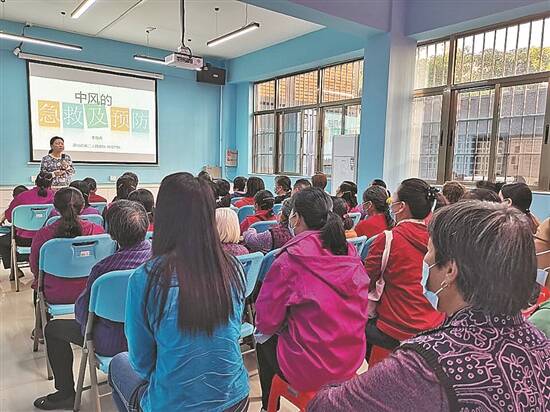 近日,为提高社区居民的健康卫生保健意识,大鹏办事处下沙社区邀请深圳市第二人民医院神经内科李丹卉医生给辖区老人开展了一场以“中风的急救及预防”为主题的健康知识讲座,为辖区老年人讲述预防中风方面的知识,此次讲座吸引了50多名社区老人参加。 讲座中,李医生介绍了中风的病因、病症及应如何预防、就医、调护等知识,深入浅出,列举了中风的4大要点。同时,李丹卉医生结合日常接触的病例,引导居民加强日常保健、养生,注重每日膳食营养,少油、少盐、少糖,多留意身体发生的变化,做到未病先防,因为“自己才是最好的医生”。 (文/图 蒋佳元 胡世民 冯丽娣)