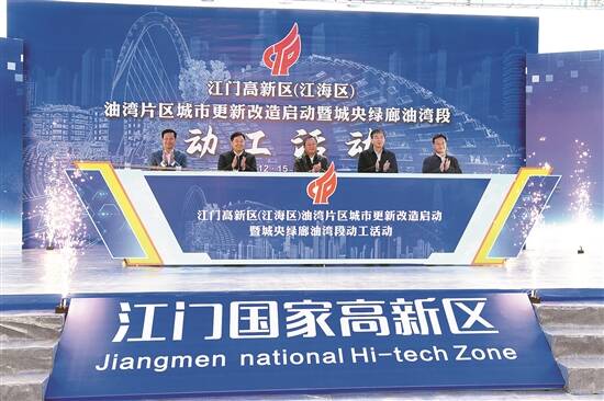 羊城晚报讯 记者陈卓栋,通讯员梁云峰、谭耀广摄影报道:15日上午,江门高新区(江海区)举行油湾片区城市更新改造启动暨城央绿廊油湾段动工活动,据悉,油湾片区将建设成集休闲娱乐、科创金融、服务配套、商业办公和高档住宅于一体的现代化滨水生活办公区。 记者了解到,油湾片区位于江海区江门大桥与北街大桥之间的一段沿江地带,目前该片区夹杂分布着旧厂房、旧村庄、旧民房,布局凌乱、用地低效。江海区相关领导介绍,油湾片区城市更新改造项目规划用地总面积1066亩,总投资约60亿元,计划通过共建共享的模式,由政府主导、统一规划、整体改造、统筹开发,充分利用该片区“山-城-河”的自然生态本底和区域文化特征,新建公园、道路、学校等公共设施,整体实施城市更新,建设集总部经济、科创金融、高端商贸、高档住宅、休闲娱乐和公共服务配套于一体的现代化高品质社区。 另一方面,油湾片区城市更新改造也是江海区城央绿廊建设的一个组成部分。记者获悉,近年来,江海区沿江门河、西江边高水平规划和高标准推进长约20公里的城央绿廊建设。经过三年的努力,目前江门船厂至江门大桥段、外运码头至外海大桥段已陆续建成并对外开放,打造成为集休闲运动、工业遗存、总部经济及观光于一体的绿色经济和城市河滨休闲景观带,也成为江门市唯一入选全省万里碧道的试点项目。