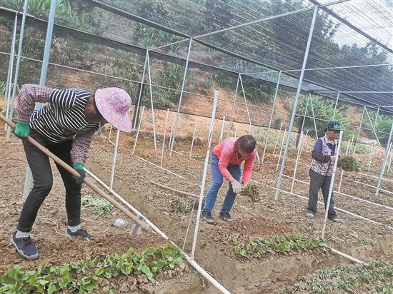 广东农行大力支持户社合作,“贷”动贫困户脱贫奔康。图为加入云浮百草源种养合作社的贫困户正劲头十足地培育广藿香幼苗