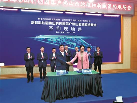 羊城晚报讯 记者张闻、通讯员区智颖摄影报道:拥抱大湾区,握手深圳科创力量,南海迎来重磅利好。12月22日,深圳科技园佛山科创园签约仪式在南海迎宾馆举行,佛山市南海区政府和深圳科技工业园(集团)有限公司签署了《框架协议》,深圳科技园佛山科创园正式落户佛山西站枢纽新城,为跨越珠江东西两岸的科创力量和先进制造业搭建起连接桥梁。 树“佛山+深圳” 产业合作标杆 深圳科技园是我国大陆首个科技园区,于1985年由深圳市政府和中国科学院共同创办。经过30年的开发建设,园区成功转化了一批以中国科学院为主的高新技术成果,引进了大量国内外高新技术企业,在园区内形成了电子信息、新材料、生物工程制药、金融服务和互联网金融等产业集群,成为深圳市发展高新产业的重要基地。 此次落户南海的深圳科技园佛山科创园由深圳科技工业园(集团)有限公司全流程参与规划、建设、招商、运营,项目位于佛山西站枢纽新城,围绕新一代信息技术、人工智能、检验检测产业主题,导入行业国际国内产业头部企业和上下游配套企业,汇集科研院所、检验检测中心、行业协会、公共服务平台、孵化器等相关配套产业。项目计划总投资约50亿元,将引入不少于150家产业链上下游企业,推动区域生产性服务业向专业化和价值链高端发展。 同时,项目利用深圳科技工业园强大的产业资源平台效应,加快枢纽新城建设和产业集聚,为周边制造业赋能和提升竞争力,推动增量服务资源与存量制造能力高效融合,推动狮山打造成为粤港澳大湾区的产业高地、佛山科创新城,推动南海构建“两高四新”现代化产业体系,开创南海高质量发展新局面。 链接湾区资源 全面深化对深合作 深圳科技园佛山科创园的落户,是近年来南海区强化佛山西站枢纽新城对深合作的缩影。作为佛山、南海重点打造的战略发展新平台,佛山西站枢纽新城面积8.58平方公里,是粤桂黔高铁经济带合作试验区的核心区,也是佛山、南海参与大湾区建设的标志性工程,具有无可比拟的交通区位优势。 去年11月20日,腾讯工业互联网粤港澳大湾区基地率先落户佛山西站枢纽新城。基地立足佛山,服务粤港澳大湾区,力争打造成为国家级工业互联网示范平台。同时,以本地化的工业互联网平台为核心,腾讯将聚合腾讯工业互联网领域生态企业和优质合作资源,在佛山西站枢纽新城建设腾讯(佛山)工业互联网生态产业园,共建佛山工业互联网产业生态,助推佛山乃至大湾区工业企业的数字化转型。 经过一年多的建设,腾讯工业互联网粤港澳大湾区基地将于本月23日举行揭牌仪式和正式开业,并与一批企业、金融机构、生态合作伙伴及产业集群联合体等签约合作。随着腾讯工业互联网粤港澳大湾区深圳科技园总经理基地开业,腾讯集团将连同生态伙伴,加快在佛山西站枢纽新城打造粤港澳大湾区首个工业互联网生态产业园。 南海区相关负责人表示,接下来,佛山西站枢纽新城将发挥腾讯和深圳科技园落地带动效应,加强引入深圳信息、科创、会展等生产性服务业,打造成为“佛山+深圳”的第一入口和主要平台;并加强与港澳合作,借力广佛新世界大浩湖度假区品牌优势,吸引香港高端服务业资源和人才;深化与广州合作,与广州共建全国综合交通枢纽,积极链接广州的优质人才资源、教育资源和科研资源。