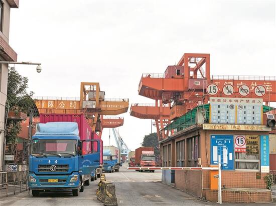 江门海关实施“船边直提”等模式,船上货物直接转至货车提离,通关速度大增 |
