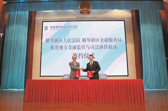 羊城晚报讯 记者钱瑜摄影报道:12月29日,珠海横琴新区人民法院与横琴新区金融服务局共同签署《关于全面推进地方金融监管与司法协作联动的备忘录》,横琴法院党组书记、院长陈晓军,横琴金融局局长池腾辉作为双方代表签约。中国银行横琴分行等横琴金融业界、法律服务界的代表30多人参加了签约仪式,共同见证横琴司法审判与金融监管协作迈进新阶段。 此次双方签署的合作备忘录包括九项机制,围绕召开联席会议、建立专家咨询委员会、人才资源优势互补、信息共享交换、重大风险分析研判、矛盾纠纷多元化解、纠纷快速解决、重大金融纠纷协调配合、创新金融司法配套服务等内容,为未来合作指明了方向,规划了详细路径。 据介绍,金融业在推动澳门经济适度多元化及可持续发展中发挥着独特的引领和促进作用。法院的司法职能则重在引导和规范金融交易、促进金融产业健康发展和防控金融风险。此次横琴法院与横琴金融局共建金融监管与司法协作联动机制,将为珠澳现代金融产业提供更加优质的司法服务和保障,有利于推进澳门经济适度多元发展。 池腾辉称,金融局与横琴法院的合作在共建金融监管与司法协作联动机制上迈出了重要的第一步,接下来将进行更多金融与司法互动的探索,打造独一无二的金融法律生态。 陈晓军认为,横琴法院与横琴金融局共同谋划司法审判与政府监管之间的良性互动,是对横琴的发展定位、粤澳深度合作以及横琴金融业飞速发展的积极回应,将促进优势互补,实现信息共享,强化协作联动,形成强大合力,促进经济和金融良性循环、健康发展。