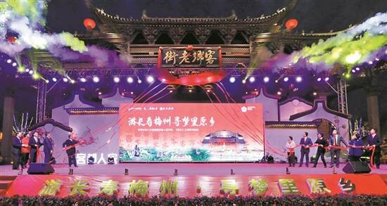 羊城晚报记者 危健峰 如何将厚重的文化与旅游产业相结合,推动“绿水青山”向“金山银山”转化?梅州在文旅融合发展方面进行了有效探索,并成功打造出新样板。12月25日,广东省重点项目——梅州客都人家康养文旅综合体举行揭牌开放仪式,标志着梅州文旅融合发展的新地标、新标杆正式诞生。 一条老街 点亮梅江花月夜 2018年11月,客都人家康养文旅综合体项目签约落户梅州市梅县区;2019年5月18日奠基动工;2020年12月25日正式建成开放。值得指出的是,今年在梅州市区各级的支持下,该项目克服疫情等不利影响,开足马力抢进度赶工期,是梅州构建“5311”绿色产业体系,打造生态经济发展新标杆,争当生态发展区建设先行示范市的具体实践。 据翼天文旅集团董事长刘汉军介绍,客都人家康养文旅综合体项目一期包含中国首台围屋情景体验大型舞台剧、客乡老街、寻麓间精品民宿等核心文旅板块。其中,客乡老街有50多座从全国迁建的明清古宅,街区涵盖有客家山歌、汉剧汉乐、花灯纸花、提线木偶等客家非遗和民俗文化,还有客家美食、VR体验、新旅游业态等。“客都人家项目将以‘客家文化’为根,以客乡老街与《原乡》剧场为双引擎,打造千年客家一部剧、客家美食一条街、客家非遗一座城、客家文化一个馆,构建出全球8000万客家人的‘心灵家园’。” 刘汉军说。 一台新剧 演绎客家千古情 《原乡》是全球首台以客家文化为主题所创制的大型情景体验剧,也是首台以建筑结构为支点的实景演出。 据该剧导演梅洪介绍,《原乡》全剧80分钟,分为《回归原乡》《客从何来》《心系天下》《客乡情愫》《拳拳之心》《视死如归》《灿若星河》《九九归原、乡情永筑》等章节,以客家母亲的角色贯穿全剧,讲述客家人一路迁徙、衣冠南渡的过程,再以黄遵宪、丁日昌、丘逢甲、张弼仕、林风眠、李惠堂、谢晋元、姚子青、曾宪梓、田家炳等客家先贤的故事串联,展现客家人不畏艰辛、开拓进取、爱国爱家的精神和情怀。 “在观演过程中,将极具特色的客家围屋作为舞台空间,设计了360度可旋转并前移动的观众席,将鲜活而生动的客家代表人物的故事植入于围屋的建筑环境中,让观众去感受围屋所具有的‘一方水土养育一方人’的特殊意义。随着剧情的变化,观众席会向前移动,我们赋予了这种功能一个新的寓意,它象征着客家人‘走夷方、闯天下’勇往直前的精神气概。”梅洪说。 一个产业 耕耘希望和梦想 梅州是国家历史文化名城,人文荟萃、底蕴深厚,是大文豪郭沫若赞为“文物由来第一流”的福地,是广东唯一的客家文化生态保护区。近代以来梅州孕育了院士37名、大学校长340多名、将军540多名,是著名的文化之乡、旅游胜地。 “近年来,梅州立足生态之美、绿色之深、人文之盛,把发展文旅产业作为苏区振兴的重中之重、希望所在,千方百计、充分挖掘散落在梅州大地上的丰厚宝藏,努力探索‘生态产业化、产业生态化’的实践路径,培育壮大文旅支柱产业。”梅州市委书记陈敏在客都人家康养文旅综合体揭牌仪式上说。 而作为粤闽赣边首个以客家文化为载体的文旅综合体,客都人家康养文旅综合体的建成开放,也将为梅州发展全域旅游、推动乡村振兴注入强劲的新活力。同时,辐射周边区域加快乡村振兴,形成“生态+文化+旅游+城镇化”发展模式,带动当地镇村实现资源互通、要素共享、连片发展,推动产业融合、城乡融合发展。目前,梅州市全域旅游方兴未艾,全市3A级以上景区达39个,居全省第二。