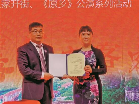 梅州市副市长张晨代表梅州市政府接受“世界长寿之都”牌匾和证书 |