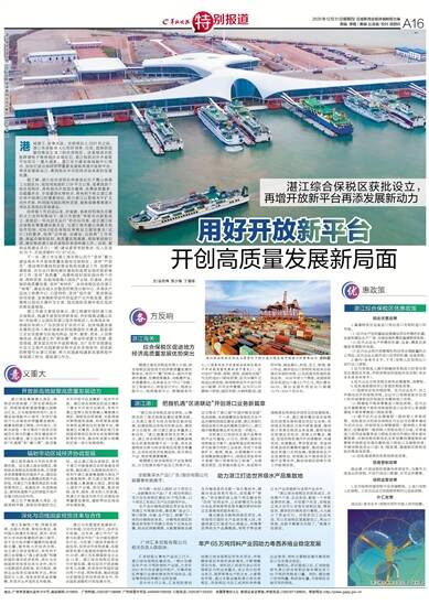 文/袁增伟 黄少娥 丁海琼 港城湛江,好事连连。在即将迈入2021年之际,湛江传来振奋人心的好消息:日前,国务院批复同意设立湛江综合保税区。这是继成功获批跨境电子商务综合试验区后,