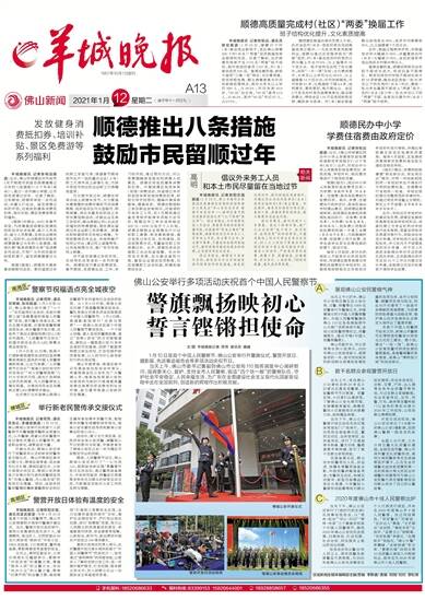 羊城晚报讯 记者欧阳志强、通讯员袁武报道:今年1月10日是首个中国人民警察节,佛山市公安局高明分局举行警旗升旗仪式。当日,警营开放日活动举行,高明公安邀请抗疫先进个人、道德模范、身边好人、