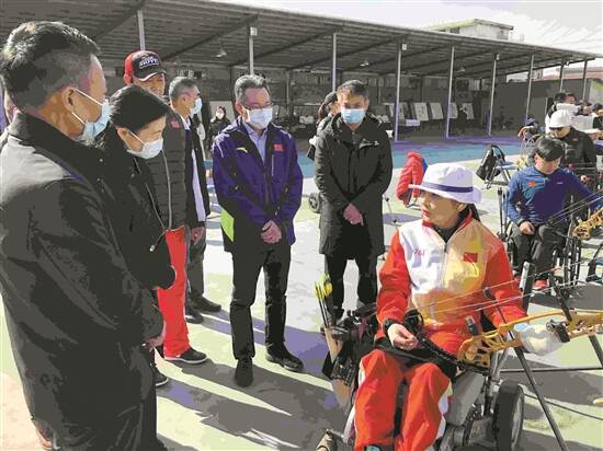 羊城晚报讯 记者谢颖摄影报道:1月13日上午10时,国家残疾人体育训练基地揭牌仪式在东莞市残疾人体育训练中心体育馆内举行,这也是广东省首个“国字号”残疾人体育训练基地落户地级市。广东省残联副理事长陈宏宇、东莞市副市长黎军、省残联宣文部部长陈土新、省残疾人体艺中心主任龚春光及东莞市财政局、市民政局、市文化广电旅游体育局、东城街道等有关领导同志出席了本次揭牌仪式活动。 记者获悉,目前共有国家盲人柔道队、国家盲人门球队、国家残疾人射箭队等3支队伍在莞集训,其中一名90后本土女孩陈敏仪正在备战2021年残奥会。 东莞市残联理事长陈伟贤在致辞时表示,这次市残疾人体育训练中心挂牌国家残疾人体育训练基地的牌子,对于提高东莞市残疾人体育工作水平,促进东莞市残疾人体育训练基地建设,推进残疾人体育工作标准化、规范化、专业化具有积极的意义和深远的影响。 陈宏宇表示,此次东莞市残疾人体育训练中心被中国残联命名为“国家残疾人体育训练基地”,是省内地级市首个“国字号”残疾人体育训练基地,这不仅是东莞市残疾人事业发展当中的大事、盛事,也是全省残疾人体育事业发展中的好事、喜事,这深刻体现了中国残联对东莞残疾人体育工作的充分肯定和高度信任。 揭牌仪式后,陈宏宇一行走访慰问了在莞集训的国家盲人柔道队、国家盲人门球队、国家残疾人射箭队等3支队伍。 记者在射箭场看到,国家残疾人射箭队的13名运动员正在训练,其中一位90后姑娘陈敏仪则来自东莞石龙镇。 11年前,陈敏仪因缘巧合结缘射箭项目,多年来,这位90后女孩已经夺得不少荣誉奖章。2019年6月,陈敏仪在荷兰举行的2019年残疾人射箭世锦赛上,获得1块铜牌和1个第四名的成绩。为此,她为我国在女子复合弓W1个人排名赛上争到了一个2021年东京残奥会的参赛席位。 谈及备战,她很有信心地表示,希望此次能冲击2021年残奥会的前三名。“以前的我,也有自卑心理,但参加射箭训练以后,让我重拾了信心,多了自信”,她鼓励更多的残疾人朋友,“要敢于走出自己的圈子,会找到更好的自己。”