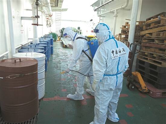 揭阳海关关员对进境天然气船舶开展检疫工作 林海壁 摄 |