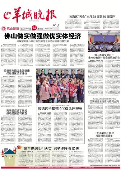 羊城晚报讯 记者张韬远报道:1月12日晚,央视《新闻联播》用3分54秒的长篇幅,以《佛山做强做优实体经济 推动高质量发展》为题,报道作为全国制造业转型升级试点城市的佛山,做强做优实体经济,推动高质