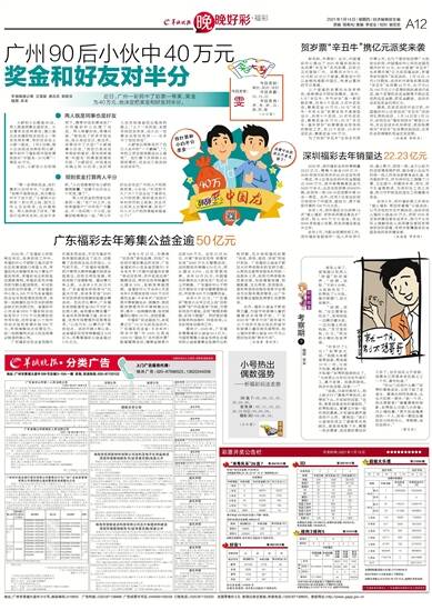 2020年,深圳福彩全年彩票销量22.23亿元,筹集公益金6.99亿元。2020年深圳彩民共中出28注双色球一等奖,有4位幸运彩民中奖金额超过1000万元,其中单票最高奖金为5829万多元,出自双