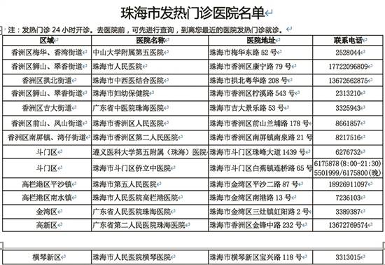珠海市发热门诊医院名单 |
