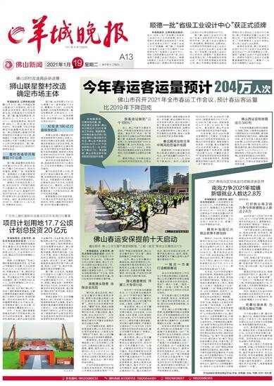 1957年10月1日创刊 2021年1月19日 星期二 庚子年十二月初七 佛山新闻 区域新闻全媒体编辑部主编/责编 李斯睿/ 美编 刘苗/ 校对 黎松青
