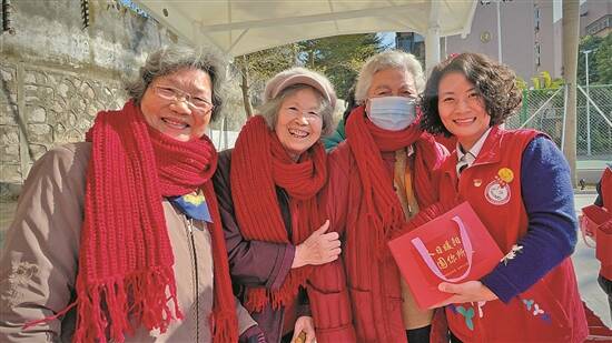 羊城晚报讯 记者李天军,通讯员姚家玥、房蓓摄影报道:那一抹抹耀眼的红,让这个冬天不再冷……1月15日上午,南山区桃源街道龙辉社区党委组织新一届党委班子前往辖区军休二所送温暖,给老干部送去大红色的手工编织围巾和春联,提前向他们致以新春的祝福。 活动当天,迎着暖阳,龙辉社区党委班子成员给军休老干部系上围巾,与他们热情交谈,叮嘱他们保重身体。“马上就要过年了,社区党委班子给大家送温暖来啦!所有围巾都出自社区爱心编织队队员之手,是他们一针一线,历时一个多月编织而成。礼轻情意重,这一条条围巾,一副副春联,饱含着社区党委对社区长者的关心和祝福!”社区党委书记武丽红说。 “感谢社区党委对我们的关心,昨天家里的孩子给我来电话,说周末要降温了,让我及时添衣。今天社区就给我们送来了围巾和春联,真的很感动。虽然我们老了,但党和政府没有忘记我们!”一名军休老干部动情地说。 据了解,军休二所是桃源街道龙辉社区独特的红色资源地,居住于此的老干部曾为保家卫国立下汗马功劳,做出突出贡献,有非凡卓越的功勋。龙辉社区党委积极在社区弘扬尊老敬老、拥军爱军的传统美德,在工作中注重与军休二所联动,给他们提供长者午餐配送、居家用电安全检测、肿瘤筛查等精准、精细服务,受到老干部的好评。