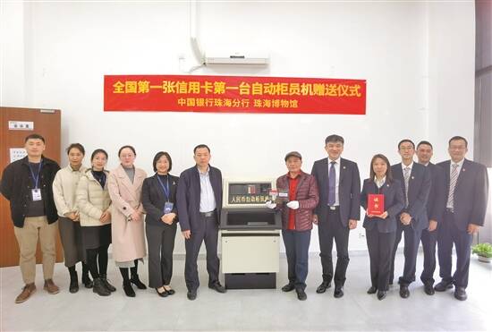 珠海中行向珠海博物馆赠送第一张中银卡与第一台ATM机的复刻品 |