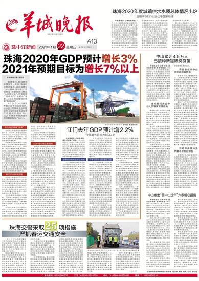 珠海2020年GDP预计增长3% 2021年预期目标为增长7%以上