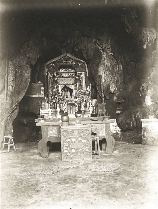 龙岩寺里的祭台,位于溶洞之中,摄于民国初年 |