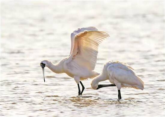 濒危鸟类黑脸琵鹭现身惠州 练伟光 摄 |