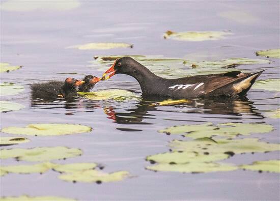 西湖黑水鸡哺育幼鸟 欧国强 摄 |