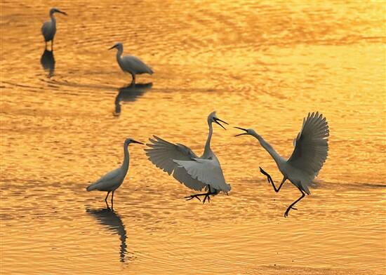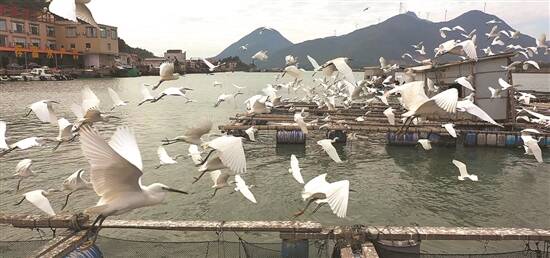 惠东黄埠三洲码头,清早渔民在码头装卸海鱼,白鹭纷纷飞来抢食掉在地上的小鱼小虾 练伟光 摄 |