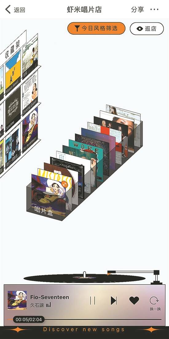 但虾米音乐曾经非常繁荣。最辉煌的2013年,其用户规模一度高达2000万。“尊重音乐”成为虾米音乐的最大标签,这里不仅有着细致而专业的分类和精准的推荐算法,而且产品设计充满人情味,其使用体验远胜国内其他音乐平台。乐迷小刘坦言,至今仍不卸载虾米音乐的原因是因为“好看”。虾米的UI设计一直为人称道,除了经典的横屏磁带播放模式之外,虾米在去年9月还上线了“我的唱片店”等功能,UI设计模仿真实店铺,用户可以在“唱片盒”“收藏架”上挑选和展示唱片。此外,在大部分音乐电台都只会“猜你喜欢”的时候,虾米电台却增设了“听见不同”模式,为乐迷提供接触更多不同曲风的机会。