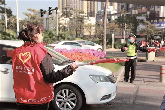 志愿者上路协助维护交通秩序 |