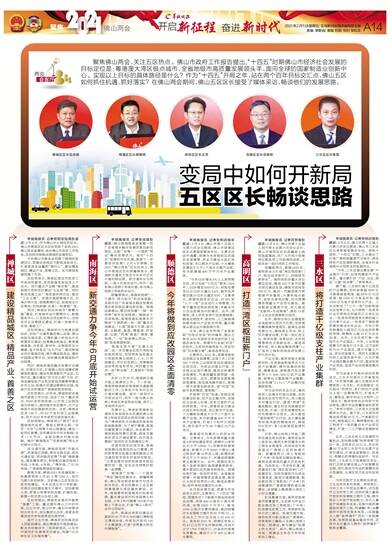 聚焦佛山两会,关注五区热点。佛山市政府工作报告提出,“十四五”时期佛山市经济社会发展的目标定位是:粤港澳大湾区极点城市、全省地级市高质量发展领头羊、面向全球的国家制造业创新中心。实现