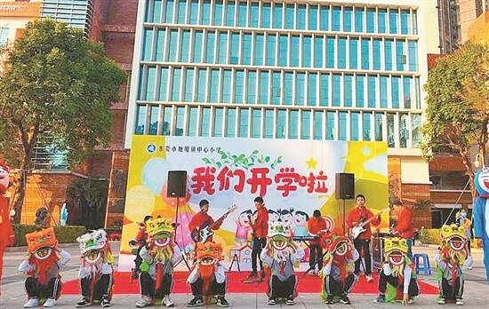文/图 羊城晚报记者 秦小辉 通讯员 程思敏 刘文杰 测量体温、上交健康卡、与同学老师拥抱……2月22日,东莞市塘厦镇68所学校、幼儿园的8万余名师生,正式迎来春季开学日。记者走访发现,在全面做好疫情防控工作的同时,今年不少学校、幼儿园精心准备了“花式”开学典礼,除了派发新年利是之外,朱砂启智、乐队表演、新年许愿、击鼓明志等各类新颖的活动在学校上演,现场仪式感十足,营造了喜庆欢乐的开学氛围,也让同学们能尽快融入校园生活,投入到新学期的学习中。 “春节期间,宝贝们学会了什么?”“大家的新年愿望是什么?”22日,在塘厦中心幼儿园的开学典礼现场,大班和中班的学生代表,与同学和老师分享了寒假期间学会的知识及技能,也表达了自己的新年愿望。随后,在动感十足、喜气洋洋的歌舞声中,拉开了新学期的序幕。 塘厦镇中心小学以“我们开学啦”为主题,在学校中心广场设置了一个小型舞台,学校摇滚社团的同学们演奏着激情澎湃的摇滚乐曲,鼓乐社团的同学敲锣打鼓,“今日我当家”的同学们,则组成舞狮队进行现场表演,周围还有6名家长义工装扮成不同的卡通形象,与到校的学生问好互动,场面十分喜庆温馨。 走访中,记者发现,多数学校和幼儿园都为同学们准备了新年利是,有的利是封里装的是糖果,有的是对孩子成长的美好祝福,有的则是对孩子们的鼓励,勉励同学们在新的一年里,能学习牛的品格、发扬牛的精神,以不怕苦、能吃苦的牛劲牛力,坚持踏实学习、吃苦耐劳、勇往直前,通过辛勤耕耘,最终收获属于自己的果实,成为栋梁之才。 走过健康门,入口处放着鼓、苹果、芹菜、桔子、大葱、棒棒糖等,分别寓意着“一鼓作气”“平平安安”“勤奋好学”“大吉大利”“聪明伶俐”“身体棒棒学习棒棒”等美好的祝愿,希望宝贝们在新的学期里快乐健康成长。 为了让学生尽快适应新学期,多数学校和幼儿园都组织开展了“开学第一课”班会活动,聚焦安全问题,为同学们主讲思想政治课等,勉励学生做新时代的好少年。塘厦镇中心小学通过网络举行了开学典礼,法制副校长作了安全教育讲座后,校长以《做全面发展的阳光少年》为主题,主讲了新学期的第一节思想政治课,受到了学生们的欢迎。 多数幼儿园则以体能课、户外课为主,孩子们通过游戏互动,与老师同学进行互动交流后,很快融入到新学期的学习生活中。