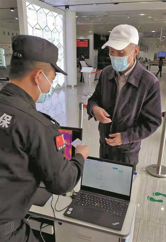 市民将身份证放在“一证通行”专用设备上,2秒钟内就完成了健康码核验 |
