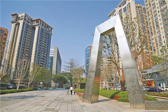 文/图 羊城晚报记者 文聪 通讯员 李群 “广发片区建成以后,出门散步再也不用跑那么远了。”23日,家住东莞市南城街道华凯豪庭的张先生笑着说,去年11月听说这一片要升级改造,自己一直留意工程进度,没想到短短一个月就完工了。“原以为只是把绿化带内部清理干净,没想到变成了这么漂亮的广场,还增添了小朋友的游乐设施,非常惊喜!” 伴随着南城广发片区施工围挡设施的拆除,原本闲置地不见踪迹,取而代之的是充满活力、生态自然的广场。错落有致的树木、绿树成荫的人行道,以及简约雅致的乐园,正以靓丽多姿的容貌展现在人们的眼前。 从广发金融大厦楼下望去,可看到建成以后的广场与附近的高楼大厦相互呼应,为这一带增色不少。广场上种植了狗尾草,与周边环境搭配相得益彰,一派绿色、自然、简约的气息。 走进广场内部,儿童活动区让人眼前一亮。蓝色的地面与天空交相辉映,跷跷板、秋千、滑滑梯都是各种动物造型,与整个环境融为一体,充满童趣。 广发片区位于中心城区“一心两轴三片区”的核心区域,具备城市公共性与连接性的双重特点,是推动东莞中心城区品质提升,实现“绽放东莞活力的中心城区”目标的核心区。据介绍,该片区2019年11月底动工建设,2020年12月底完工。所在片区有7个权属单位,包括4个住宅小区、3栋商业建筑,项目改造内容包含广发金融大厦、盈峰大厦、嘉信大厦、世博领寓、凯明轩、华凯豪庭周边的车行道、人行道、铺装绿化提升改造等,改造面积8.01万平方米,其中道路面积约2万平方米、园林园建面积约6万平方米。 记者了解到,为了实现“绽放东莞活力的中心城区”目标的核心区的理念,该工程设计了两条景观主题轴线:一是自然活力轴,在这个轴线上创设了生态自然街区,保留现状长势良好的树木,在林下增加休憩活动空间。一方面让街区成为绿色自然的漫步空间,另一方面兼具海绵城市的生态功能。同时营造了复合功能的场所,吸引人气,创造活力,为商务人群提供更多户外商务休闲场所空间,同时满足居民生活化的功能需求,如活力广场、儿童活动区等。 二是社区生活轴,在这个轴线上首先满足全龄化的功能需求。为不同年龄段市民设计活动区域,建设成为服务周边居民的城市公共空间,形成具有健康关怀和社交关怀的公共场所。其次打开绿地视线,激活街面商业。将生活轴绿地重新梳理,清除绿地中长势不好的乔木和灌木,激活街道两侧的社区商业,让商业和公共活动形成良好互动。