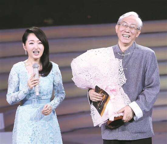 如果说江西音乐会的关键词是“感恩”,上海音乐会的关键词便是“传承”。吴颂今的母校上海音乐学院与上海音乐家协会担任音乐会的主办方,吴颂今的歌坛弟子和上海音乐学院的师弟师妹,都在音乐会上倾情演绎了他的作品。感人一幕出现在音乐会尾声:著名新民歌歌唱家陈思思在压轴唱完成名曲《情哥去南方》之后,向老师吴颂今献上一束鲜花;吴颂今则把他的恩师们——当年母校上海音乐学院的老院长江明惇、作曲系老书记沙汉昆,上海音乐出版社老编辑汪玲、李丹芬,南昌一中的班主任何竹清都请到台上,向他们一一献花致谢。老师、弟子三代同堂,成就一段佳话。回忆起上海音乐会,吴颂今言辞中充满感激:“当时汪玲老师已经定居海外了,80多岁高龄而且腿脚不方便。但她特地从伦敦飞回上海支持我,实在让我感动。”