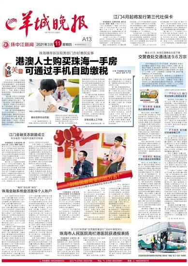 文/图 羊城晚报记者 钱瑜 通讯员 黄婷 牛广东 3月10日,港澳人士购买一手房全程线上自助缴税率先在珠海横琴推行,这也是横琴“我为纳税人缴费人办实事暨便民办税春风行动”