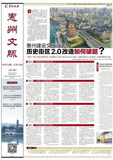 统筹策划/羊城晚报记者 陈骁鹏 马勇 文/图 羊城晚报记者 林海生 实习生 谢雪怡 屠晓雯 北京南锣鼓巷、上海小东门、成都宽窄巷子……国内不少历史悠久的城市都有这样的老街,它们在历史的年轮下渐渐衰老,又在时代的“召唤”下焕发青春。在千年古郡惠州,水东街、金带街、祝屋巷正是这样的存在。 2020年6月,惠城区启动“一湖两江”城市会客厅整治提升工程,通过对水东街、金带街、祝屋巷“两街一巷”的微改造,使其焕发新生。 今年惠州市《政府工作报告》提出,要推进文化强市建设,加强历史文化遗产保护和利用,建设祝屋巷、金带街、东坡尚书房、粤书吧等一批文旅融合示范点,打造更多“网红打卡地”。同时要抓好国家文化和旅游消费试点城市建设,打造粤港澳大湾区文化遗产游径等精品线路,培育消费新动能。 新的蓝图下,惠州拿到了一张新的考卷:如何在历史文化名街打造中激发消费潜能,实现传统资源向当代消费结构转变? 案例1 祝屋巷微改造后特色凸显 3月5日,周五下班前半小时,市民小李在好友微信群中发了一条聚餐的消息,群里一下子热闹了起来:“阿妹小海鲜?”“喜碧海鲜?”“乌记吃盐焗鸡?”经过讨论,他们去了位于祝屋巷的黎记大排档,品味许久未吃的蛋饺和萝卜干鸡煲。 祝屋巷坐落于惠州西湖北部。明正德年间,江南四大才子之一的祝枝山在此筑屋。其后人也居住于此地,建有祝家祠、祝家田,祝屋巷由此得名。 夜幕降临,花灯初上,小李一行人在黎记大排档饱餐后,漫步在祝屋巷,耳畔边驴窝小栈响起了音乐声:“和我在成都的街头走一走,直到所有的灯都熄灭了也不停留……”不禁感慨:祝屋巷变化真大! 沿着祝屋巷,可以看到道路较先前拓宽了许多,路两边店铺也由原先的杂乱变成了整齐划一,古韵十足的招牌下,巽寮小海鲜、德记大排档等的特色菜被摆上饭桌,游客们觥筹交错;在黎记大排档对面的墙上,投影来回滚动着祝枝山的诗词。 记者在现场看到,祝屋巷还专门开设了“祝枝山主题书屋”,以此为枢纽,向游客传播祝枝山的惠州故事,书屋旁的LED宣传屏上,来回滚动着祝屋巷在改造前的模样…… 黎记大排档老板娘庄雪花告诉羊城晚报记者,1993年刚开业时只有街坊捧场,收入勉强维持生活。改造后祝屋巷环境极大改善,游客越来越多,餐馆几乎每天爆满,家里还扩建了一栋新楼房,收入可观。 祝屋巷改造项目负责人李木勤介绍,祝屋巷占地面积约15万平方米,房屋300多栋,整体呈一街十巷格局。广东英秀文创科技有限公司进驻后,通过“以租代拆”的方式,租赁村民老旧房屋,在保留原有风貌基础上加入现代元素升级改造。以祝枝山的“山”字为主线,为市民呈现“幻光水舞台”“花舞秀场”“笔墨广场”等节目,打造成大湾区文旅打卡地和全国独有的江南四大才子文化特色街区。 如今,祝屋巷已有60多家文创团队进驻,文创业态不断涌现,曾经斑驳的老街区蝶变为潮流聚集地,成了崭新和靓丽的城市名片。 案例2 水东街3D动画赚足眼球 “一湖两江”城市会客厅整治提升工程在今年春节前全部完工对游客开放。春节期间,不少汉服爱好者,跨越千年来 “约惠”,每日从祝屋巷民宿出发,环绕西湖,穿过西湖九曲桥、苏堤,步入曾聚集文人墨客的文化老街——金带街;再经文笔塔,过东江走到合江楼,就能瞧见民国风情街——水东街,沿东江而上来到苏东坡故居白鹤峰东坡祠,感受东坡寓惠千日的历史文化…… 金带街是惠州古城“九街十八巷”中的主要街巷之一,形成于明洪武二十二年,东接水门、西连平湖,犹如一条带子,故名“金带街”。明清时期,黄氏书室、宾兴馆等先后建起,供参加科举考试的书生住宿备考使用。同时,周边街巷与科举文化有关的产业也逐渐在发展起来,比如文兴街,就形成了以专卖笔墨纸砚为主的街巷,故坊间又称金带街为“科举街”。 历史的车轮滚滚向前,现今科举制早已不在,金带街昔日繁华和记忆也随着年轻人才外流、房屋老化而逐渐破败、消散,留下的尽是萧条,杂乱的“蜘蛛网”、破败的老屋遍布。 2020年6月,“一湖两江”城市会客厅整治提升工程动工,通过修旧如初、风貌塑造、分步实施等举措,充分挖掘街区民俗和科举文化精髓,结合宾兴馆、黄氏书室等已成功改造为博物馆的历史建筑,打造民俗科举文化街区。 走进金带街,以前杂乱的“蜘蛛网”已不复存在。据工作人员介绍,以往金代街沿街建筑风格迥异,无法体现金带街原有历史,现以灰、白为主要色调统一改造沿街建筑,主街路面铺设青石板,结合原有的文保建筑与历史建筑,重新唤醒金带街原有的历史。 比起金带街视觉上舒适度的变化,同为微改造重点的水东街,则以“爆点”出街抓住了大家的眼球。其中,备受市民关注的裸眼3D灯光秀,利用滨江的大建筑,设计了3000多平方米的大投影。“这相当于户外超大的IMAX,展现的是水东街的前世今生和未来展望,中间融进了麒麟舞和惠州剪纸等传统元素。”水东街二期项目总设计师邹嘉盟说,市民还可以通过手机二维码,将自己的祝福语投在这个超大的IMAX屏幕上。 邹嘉盟介绍,项目整体的设计理念包含三方面,一是在历史层面上,保持了水东街三街九巷的风格,建筑层面,恢复其明清以来的骑楼风格;二是现代层面,注重当代生活的呈现;三是在高科技手段的融入,用以展望水东街的未来。 升级改造后的水东街在今
