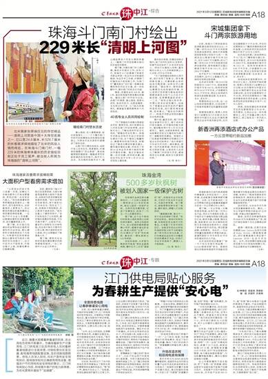 北宋画家张择端仅见的存世精品——清明上河图是中国十大传世名画之一,它以宽24.8厘米、长528.7厘米的长卷画详细地描绘了北宋的风俗人情而闻名。在珠海斗门南门村,一幅229米的珠海单体最长的