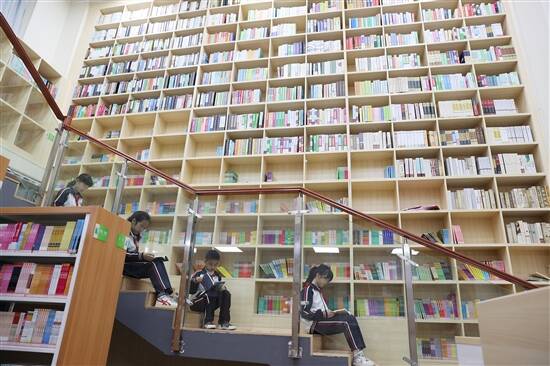 莞城中心小学分校悦读馆的书墙 |