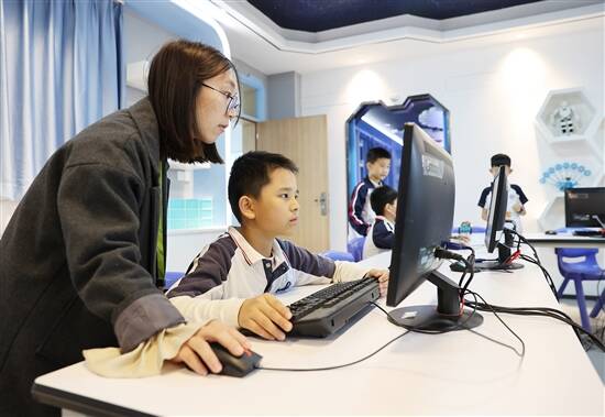 孩子们在电脑课上设计贪吃蛇游戏 |