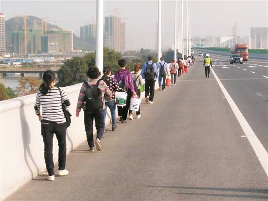 羊城晚报讯 20多人在高速公路上步行?3月15日早上8时半,珠海交警接到司机报警称,在南屏收费站往横琴方向,有20多个人在高速公路路肩上步行,十分危险。 接报后,港珠澳大桥交警大队陈警官迅速赶往现场,刚过收费站出口就看到一辆粤AF××25号牌中巴停在路肩上。陈警官发现车内空无一人,他怀疑这些人应该是从这辆中巴下去的。陈警官让司机等在原地,随后驾驶警车继续去前方找人。 开了大概两公里,陈警官才发现一群人正沿着应急车道往横琴方向步行。陈警官立即下车喊话,让他们尽量走在边上,并用警车做好安全防护。得知这些人就是刚才那辆中巴上的乘客,陈警官立即让大家回去,并走在旁边一路护送。 很快,陈警官把这些乘客带到下车的位置,并对司机展开调查。原来一早中巴出了故障,司机想着离前方路口不远,便让乘客们下车走到路口等待转乘车辆,过路司机看见,立即报了警。 陈警官对司机进行安全教育,随后对其驾驶车辆出现故障没有摆放警告标志,并让乘客下车徒步在高速公路上行走的违法行为,处以罚款200元的处罚,记3分。最后,陈警官帮忙叫来拖车,并指引乘客们快速转乘。 珠海交警部门表示,行人在高速公路步行非常危险,极易酿成重大人身伤害交通事故,切不可轻易为之。 (文/图 何叶舟 杨小江)
