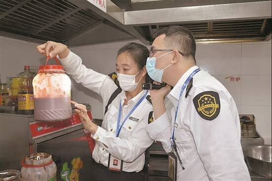 市场监督局执法人员在检查南海桂城怡海港一家小龙坎店铺 通讯员供图 |