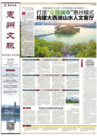 打造“公园城市”惠州模式 构建大西湖山水人文客厅