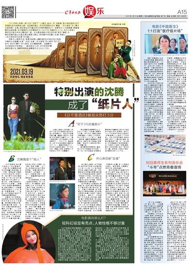 2021年3月23日/星期二/ 娱乐编辑部主编/责编 胡广欣 / 美编 丘淑斐 / 校对 赵丹丹