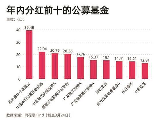 羊城晚报记者 莫谨榕 春节过后,A股市场剧烈振荡,不少公募基金通过分红来调节资产配置。羊城晚报记者据同花顺iFind数据库统计显示,截至3月24日,共有939只公募基金(A/C份额分开计算)进行红利发放,累计分红金额高达812.16亿元。而去年同期,分红的公募基金共有978只,但分红金额总额仅为430.12亿元,从公募基金分红金额上看,今年公募基金分红热情都远超去年,为同期历史之最。 多只网红基金大手笔分红 3月20日,招商基金、工银瑞信基金、博时基金等基金管理人旗下共有20只基金产品发布分红公告。今年以来,A股市场振荡加剧,尤其是春节假期过后调整明显。而近期公募基金分红规模骤增,有业内人士认为,当前市场行情持续振荡,或有部分基金经理通过分红适当降低基金规模,让投资者提前“落袋为安”,基金经理限制申购或进行基金分红,都体现了基金经理对后市看法趋于谨慎。 今年以来基金分红超过800亿元,从基金类型上看,债券基金和主动权益类基金分红力度最大。债券基金分红的数量最多,合计共有600只债券基金参与分红,合计分红总额达到226.71亿元,占分红总额的比例达29.63%。主动权益类基金年内分红总额为480.39亿元,分红规模最大,占分红总额的比例达59.15%。 主动权益类基金分红金额占大头,但是从单只基金的分红金额来看,排在前列的基金的也是主动权益类基金。 从单只基金的情况看,今年以来,146只基金的分红金额超过1亿元,分红规模排在首位的是今年的“网红基金”、由张坤管理的易方达中小盘混合。易方达中小盘混合又限购又分红,一度被投资者解读为张坤谨慎看待后市和控制规模的举措。2月24日,易方达发布公告,易方达中小盘混合自2月24日起暂停申购、转换转入及定期定额投资业务。3月24日,该基金发布公告,继续暂停申购、转换转入及定期定额投资业务。至此,易方达中小盘混合暂停申购已经有1个月余。与此同时,易方达中小盘混合还大手笔分红,2月24日,在发布暂停公告的当天,易方达中小盘也发布了分红公告,每10份基金份额分9元,合计分红规模高达39.48亿元。基金数据显示,这也是易方达中小盘混合成立以来最大手笔的一次分红。 此外,同为网红基金经理的中欧基金周应波管理的中欧时代先锋股票以1月4日为基准日进行分红,分红方案为2.60元/10份基金份额,分红总额超过20亿元;基金老将刘彦春管理的景顺长城新兴成长混合每10份派现金1.7元,分红总额也超过20亿元。 分红总额较高的还有中银丰和定期开放债券、广发聚丰混合A、广发稳健增长混合A、博时主题、南方成份精选混合A、东证睿泽、中欧远见、广发小盘、工银核心价值混合A。今年3月17日,中银丰和定期开放债券发布分红公告,每10份基金份额分红0.506元,分红规模超过22亿元。有业内人士分析,出于对债市风险的考量及满足机构投资者要求,一些规模偏大的债基也会通过分红主动压降规模。 或传递基金经理后市研判 基金分红对基金投资者而言是好事情吗?值得提醒的是,基金分红是指基金将收益的一部分以现金方式派发给基金投资人,这部分收益原来就是基金净值的一部分,因此基金分红当天基金份额净值往往就会下降。基金分红并不能代表基金业绩,基金分红也不会创造新的收益。衡量基金业绩的最主要标准还是其净值增长,投资者不应以基金分红与否来选择是否购买基金,而应该理性面对基金分红。 近期市场波动加大,部分基金通过主动降仓位和分红等方式,锁定部分收益。相比主动降仓位,基金分红能被动降仓位,往往更受投资者的欢迎。业内人士分析,今年以来出现基金分红规模激增主要有多方面原因。首先,春节假期前,A股市场大幅上涨,基金赚钱效益明显,部分基金在经历了2020年的“业绩大年”后,已经积累了一定规模的收益,通过基金分红可以提前将部分收益派发给投资者,提前实现获利兑现,也通过压降规模降低操作风险。 而春节假期后,A股持续调整。也有分析认为,对于基金公司来说,基金分红主要是对市场后续走势不看好。节后以易方达中小盘混合为代表的多只公募基金对基金进行限制申购或采取大手笔基金分红,也被市场人士解读为基金经理对后市看法趋于谨慎。