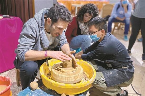 国外游客体验手拉壶制作(受访者供图) |