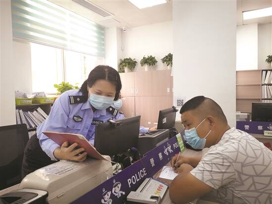 户籍民警陆绮莉为群众办理业务 |