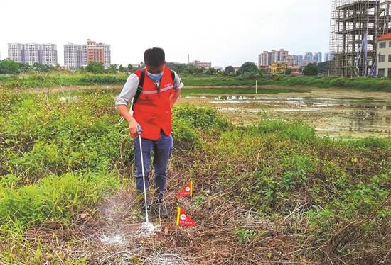 羊城晚报讯 记者欧阳志强、通讯员廖毅雯摄影报道:4月20日,由佛山市重大农业植物有害生物防控工作领导小组办公室、佛山市农业农村局主办的2021年全市红火蚁防控现场会在高明召开,部署抢抓春秋两季防控关键期,全力做好今年红火蚁阻截防控工作。 会上分析了红火蚁防控新形势、新政策、新任务。佛山市科学技术学院陈文胜教授进行了红火蚁识别和防控技术培训:“红火蚁可以通过人为扩散与自然扩散方式传播,以农作物的种子、幼芽等为食,严重危害农业生产。红火蚁受到干扰时攻击性很强,叮咬人、畜,威胁人们健康。” 随后,与会人员到清泰村一处苗木荒地,观摩红火蚁防控现场演示。“如果不小心被红火蚁叮咬了,可用肥皂水或清水清洗患部,然后用皮炎平软膏等药外敷,注意避免将脓包弄破,若出现过敏反应,应立即就医。可以采用毒饵诱杀、粉剂灭巢等方式进行红火蚁防控。”现场工作人员结合荒地特意留存的蚁巢,介绍了红火蚁及其蚁巢形态特征、特性、防控技术。 下一步,佛山将在三水、高明区全域推广农村基层防控创新机制,所有行政村成立村级防控扑杀队,全面推动基层防控创新机制落地见效。禅城、南海、顺德区因地制宜,按照聘用“第三方专业防控单位+村级防控扑杀队”相结合的模式,解决第三方专业防控单位在农用地的监测巡查扑杀不到位的问题,推进红火蚁基层防控创新机制落地。 同时,以省、市红火蚁防控技术指导专家组、华南农业大学等科研院校为技术支撑,重点加大一线防控人员的防控实操技术培训,确保一线防控人员懂识别、会用药、用好药。