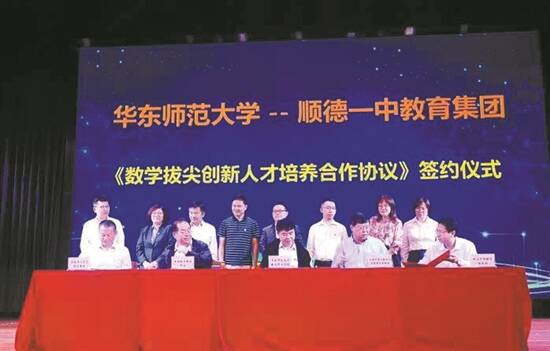 羊城晚报讯 记者曹月摄影报道:4月20日,华东师范大学国际数学奥林匹克研究中心基地学校、上海市核心数学与实践重点实验室实验基地和亚洲数学教育中心基地授牌仪式在顺德一中举行。“华东师大国际数学奥林匹克研究中心基地学校”和“亚洲数学教育中心基地学校”正式落户顺德一中教育集团,这将为学生的个性化发展提供更大平台,全面提升学生的综合素养。 据了解,4月1日,顺德区副区长蔡伟、区教育局局长温联洲带队去上海与华东师大数学科学院等签订数学拔尖创新人才培养合作框架协议。华东师大数学科学院院长谈胜利表示,不到一个月时间,正式签约、基地授牌、合作启动,顺德区委、区政府重视数学教育超乎想象。 谈胜利介绍,数学是重要的基础学科,国际竞争在数学领域非常激烈,以色列大批精英人才成长一个重要经验在于培养数学拔尖创新人才,当前,国家把培养数学拔尖创新人才列为重中之重,华东师大数学科学院首次在广东合作开设基地学校,根据以往经验,相信三年之后将取得丰硕成果。 签约仪式上,蔡伟表示,“基地学校”落户顺德,这是顺德培养数学拔尖人才的创新探索,希望这个平台能够帮助同学们提高数学成绩,更希望同学们能够具有创新的数学思维,体会到数学的艺术美,能够学会用数学解决问题。同时他希望顺德一中教育集团充分用好平台助力学校高质量发展,真正助力顺德学子触摸更高天空。 顺德一中校长谢大海介绍,未来,顺德一中教育集团将依托华东师大教育资源,在高一两个卓越班和高二、高三清北班开设数学强化学习课程,力争在数学奥赛、高考中取得突破,顺德一中南校区则在初一年级开设四个数学学习实验班,以培养初中生的数学兴趣,同时借助这个平台,还将培养一批具有更高数学素养的骨干教师,以推动顺德一中教育集团乃至顺德教育高质量发展。