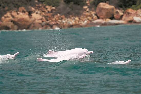 在大海中悠然嬉戏的白海豚 郑锐强 摄 |