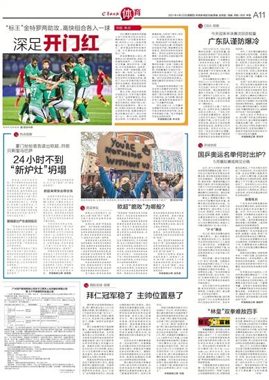 2021年4月22日/星期四/ 体育新闻部主编/责编 赵亮晨 / 美编 刘栩 / 校对 林霄